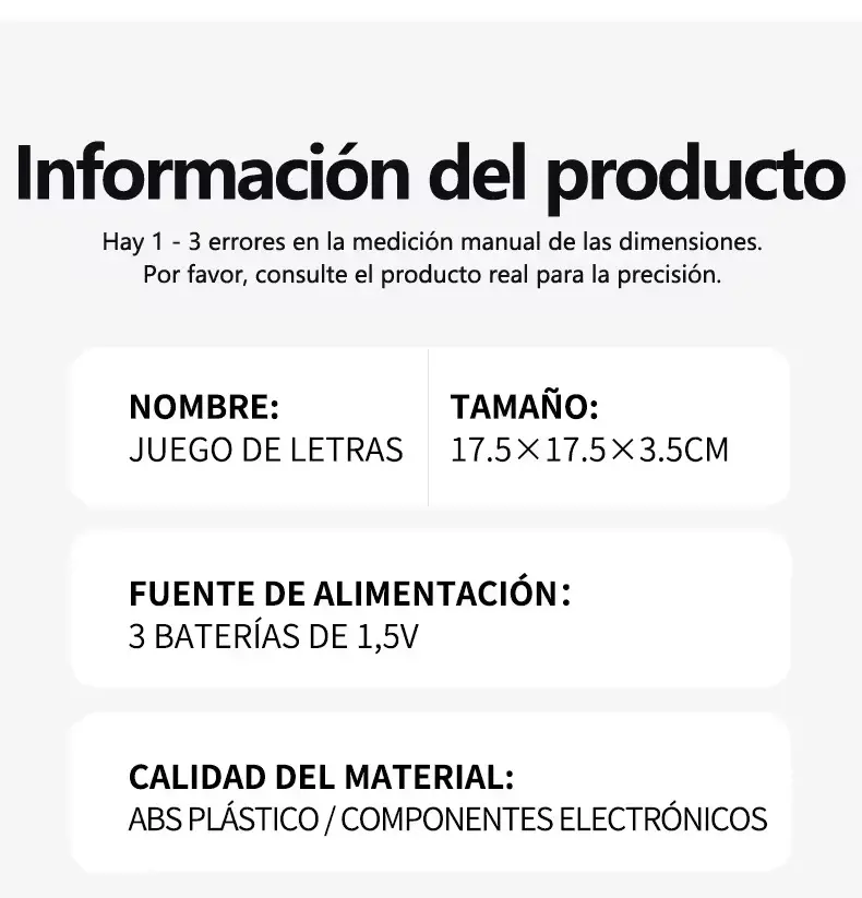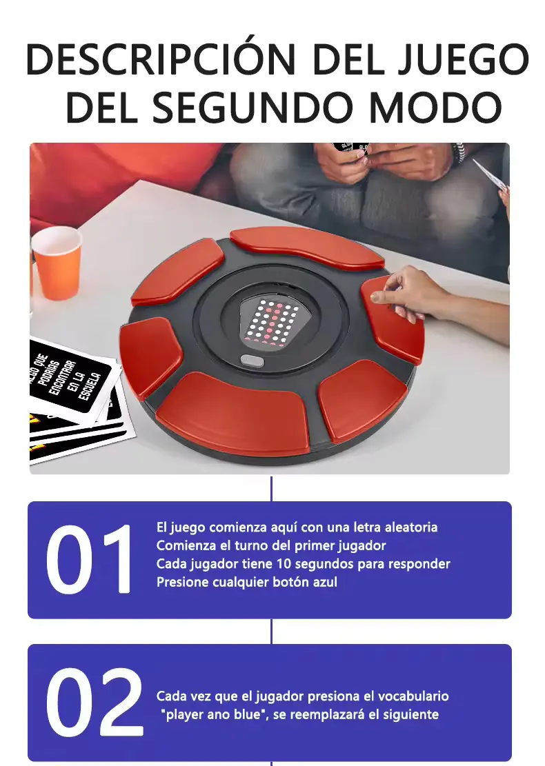 Descubre una nueva forma de jugar con esta versión mejorada: un tablero electrónico que selecciona letras al azar y controla el tiempo con turnos de 10 segundos. ¡No hay margen para distraerse!