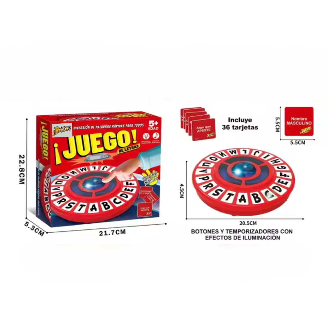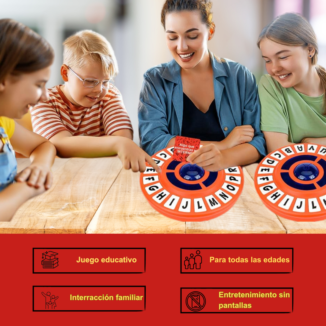 Diseñado para que niños y adultos disfruten juntos, este juego de agilidad mental mezcla velocidad, vocabulario y mucha diversión. Si fallas… pierdes la ronda. Si respondes bien, sigues en la partida.