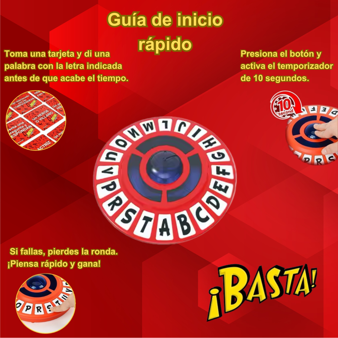 Este juego pone tu mente a prueba con cada turno. Roba una tarjeta, presiona el botón del temporizador y di una palabra que empiece con la letra indicada. Solo tienes 10 segundos, ¡así que no te quedes en blanco!